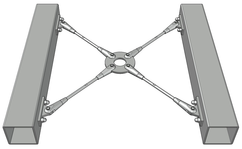 Максимальная нагрузка для систем натяжных конструкций из нержавеющей стали AISI 304 с пределом текучести 330Н/мм2: