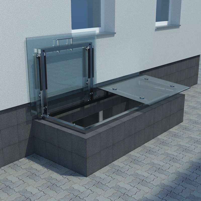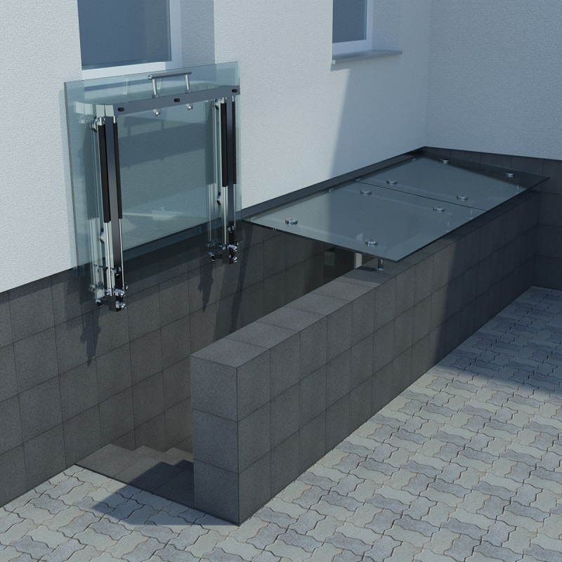 Откидные стеклянные козырьки MILLIANA над приямками на газовых упорах помимо защиты приямка от дождя и снега обладают следующими существенными преимуществами: