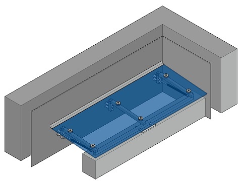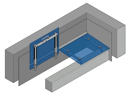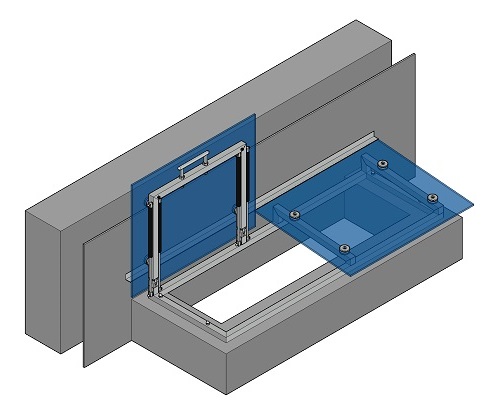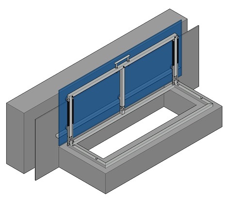 Тип 2-2 – с креплением к стене и опиранием на верх приямка, с одной открывающейся частью и второй не открывающейся частью
